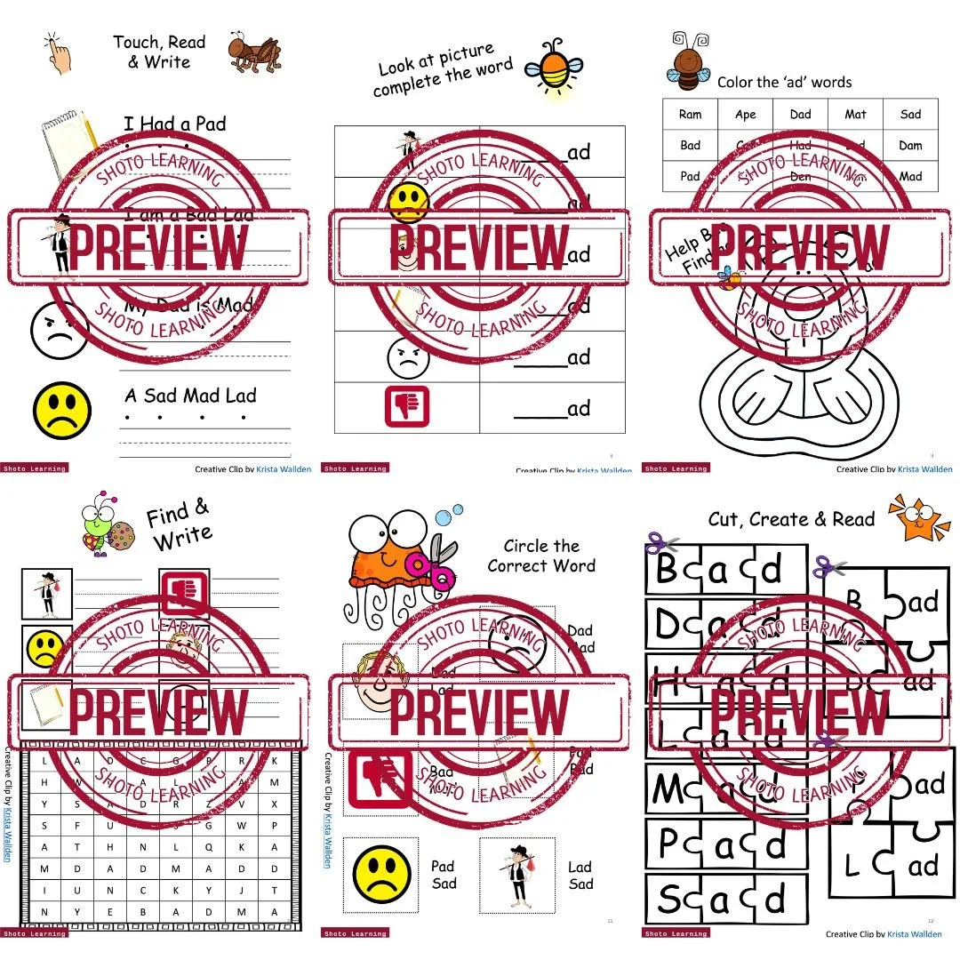 This comprehensive bundle features 10 worksheets, games, and activities to help Preschool, Kindergarten, and Grade 1 students master the AD word family. Perfect for whole-class activities, centers, small groups, early finishers, or homework, these resources promote phonics skills through engaging tasks that cater to different learning styles. Activities range in difficulty to build on strengths and address areas for improvement.